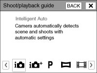 This camera contains an internal function guide. This allows you to search for camera functions according to your needs.