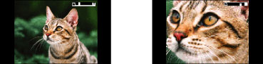 You can enlarge the image when shooting. The camera’s optical zoom function can enlarge images up to 4×.