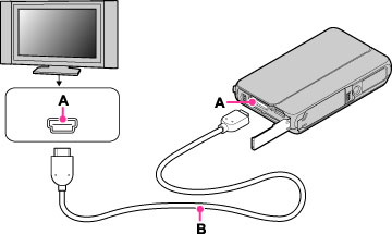 When connecting the camera to a TV, use an HDMI Cable that can be connected to the mini jack on the camera end and to the TV jack.
