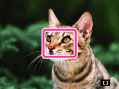 When you press the shutter button halfway down in still image shooting mode, a green frame is displayed around the area that is in focus.