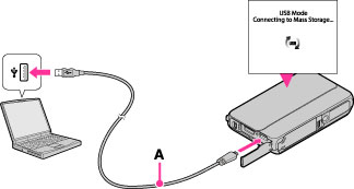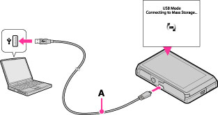 Connect the camera to your computer using a multi-use terminal USB cable (supplied) (A).